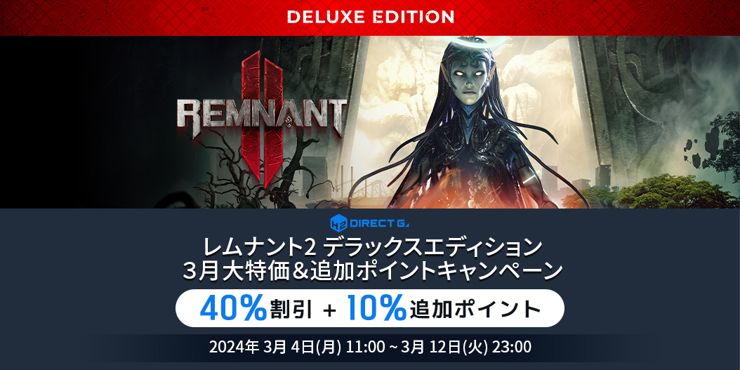 2024年3月4日(月)「レムナント2 デラックスエディション」3月大特価&追加ポイントキャンペーンを以下にてご案内いたします。
