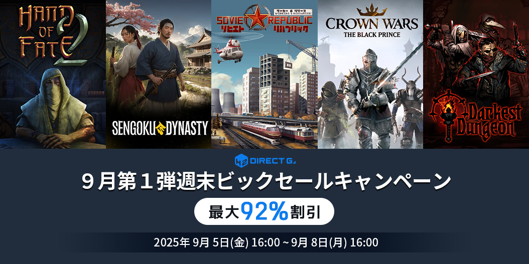 PCゲームデジタルキー公式販売サービス「DIRECT GAMES」では毎週末お得なイベントを開催しております。毎回、対象ゲームが変わるPCゲームユーザー必見のお得なキャンペーンですのでぜひご確認ください!
