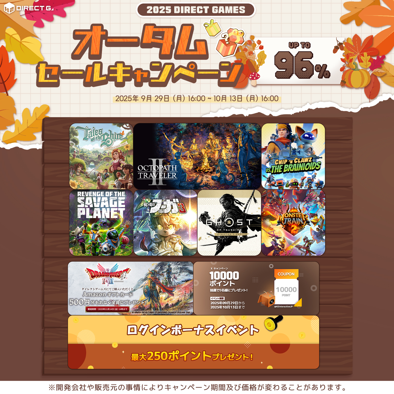 今回の2025オータムセールキャンペーンでは約2,000種類のタイトルを対象に最大96%OFFのセールや1,000円で運試しできるランダムボックスイベント、
