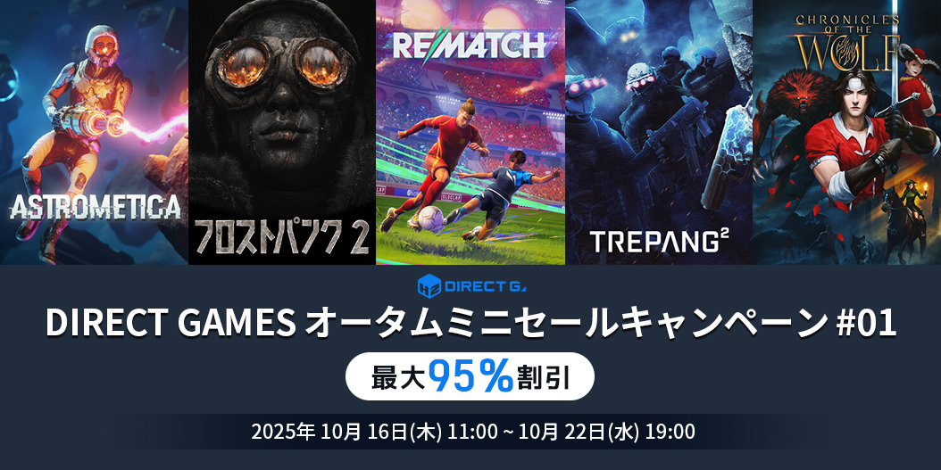 DIRECT GAMES オータムミニセールキャンペーン #01では、「アストロメティカ」、「フロストパンク2」、「REMATCH」、「Trepang2」、「クロニクルズ・オブ・ザー・ウルフ」などを含め、その他にも多数の特価商品を用意したお得なキャンペーンですので、ぜひご確認ください!