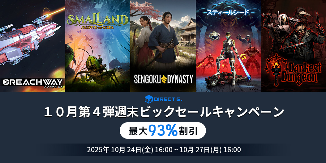 平素よりご利用いただき、誠にありがとうございます。10月24日の本日より、10月第4弾週末ビックセールキャンペーンを実施いたします。PCゲームデジタルキー公式販売サービス「DIRECT GAMES」では毎週末お得なイベントを開催しております。毎回、対象ゲームが変わるPCゲームユーザー必見のお得なキャンペーンですのでぜひご確認ください!