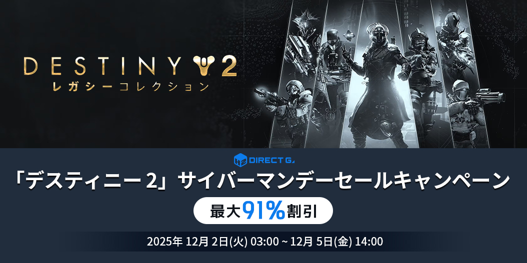 2025年12月2日(火)「デスティニー 2」サイバーマンデーセールキャンペーンを以下にてご案内いたします。