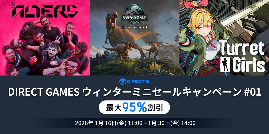DIRECT GAMES ウィンターミニセールキャンペーン #01では、「The Alters」、「ジュラシック・ワールド・エボリューション 3」、「タレットと少女」などを含め、その他にも多数の特価商品を用意したお得なキャンペーンですので、ぜひご確認ください!