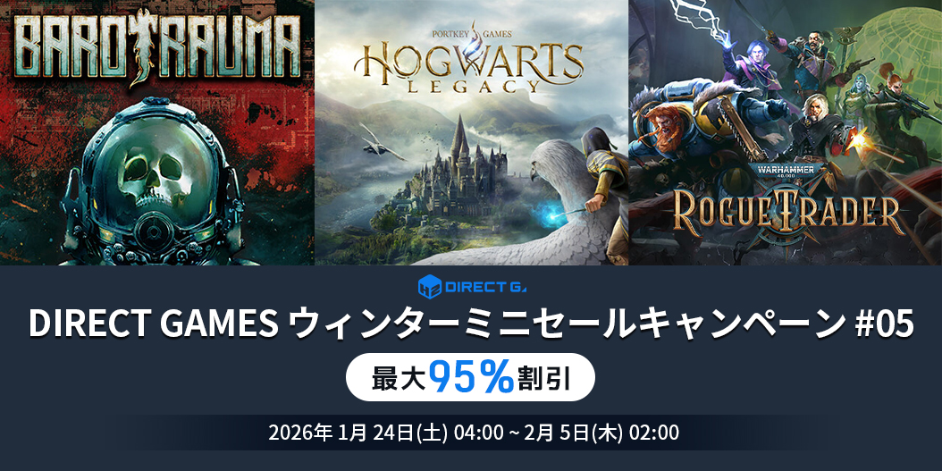 DIRECT GAMES ウィンターミニセールキャンペーン #05では、「バロトラウマ」、「ホグワーツ・レガシー」、「ウォーハンマー40K:ローグトレーダー」などを含め、その他にも多数の特価商品を用意したお得なキャンペーンですので、ぜひご確認ください!