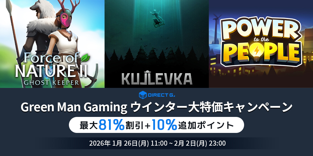 2026年1月26日(月)Green Man Gaming ウインター大特価キャンペーンを以下にてご案内いたします。