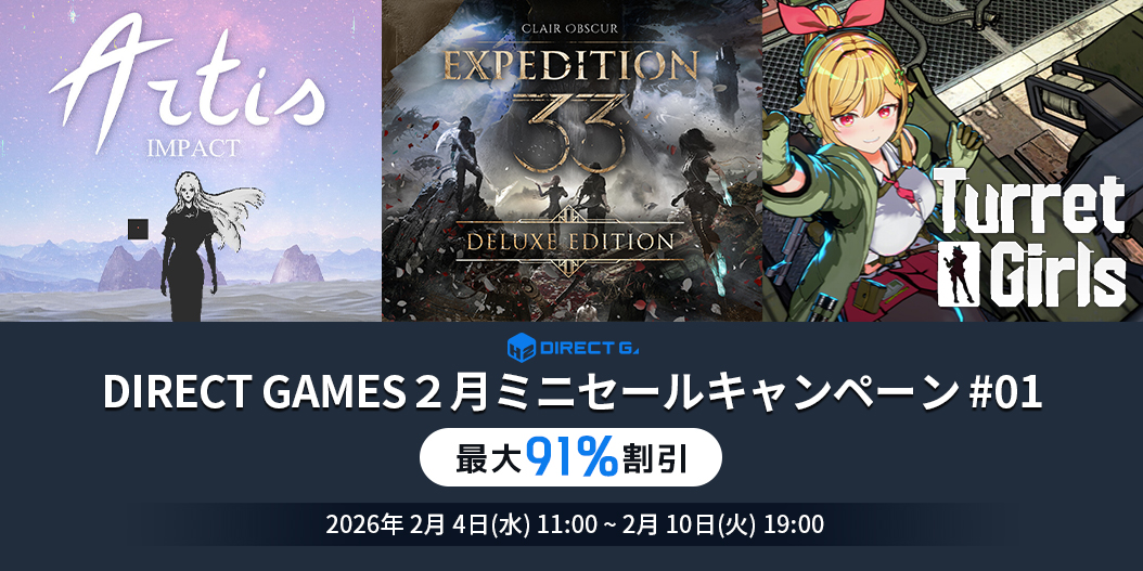 DIRECT GAMES2月ミニセールキャンペーン #01では、「Artis Impact」、「クレール・オブスキュール:エクスペディション サーティースリー デラックスエディション」、「タレットと少女」などを含め、その他にも多数の特価商品を用意したお得なキャンペーンですので、ぜひご確認ください!