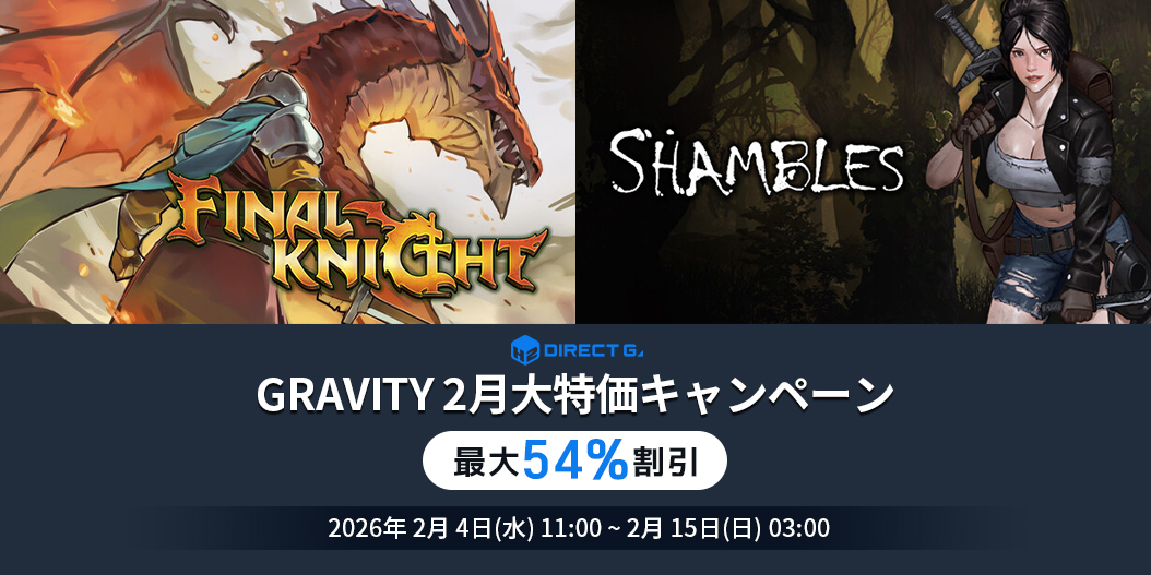 GRAVITY 2月大特価キャンペーンの詳細は、こちらをご確認ください。