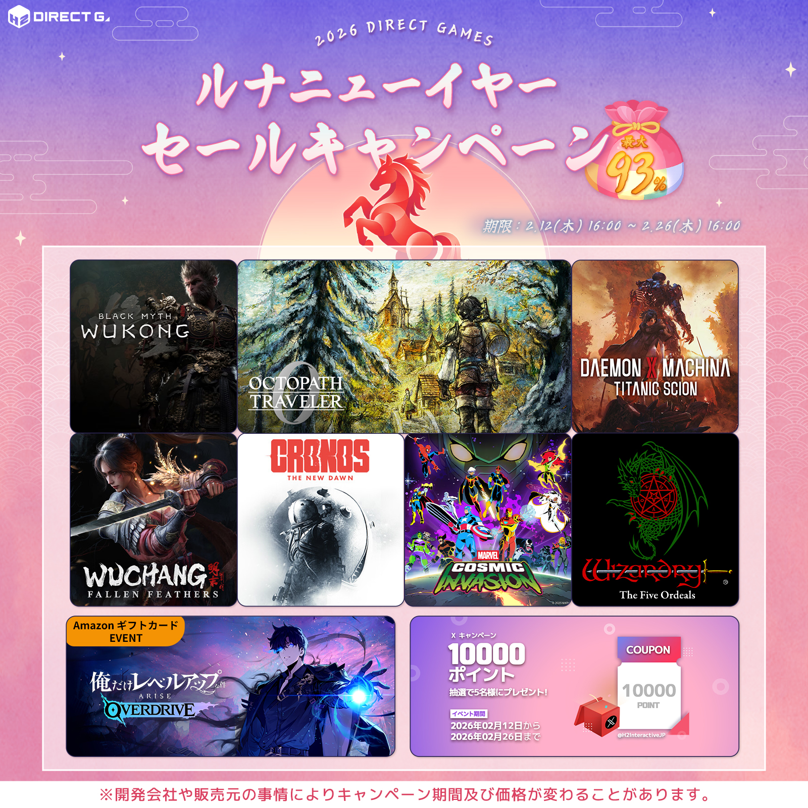 公式Xアカウント(@H2InteractiveJP)をフォローし、対象のポストをリポストすると「DIRECT GAMES」で使える10,000ポイントを抽選で5名様にプレゼントします。