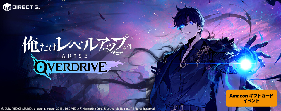 • イベント内容: 開催期間内に、ダイレクトゲームズにて「俺だけレベルアップな件:ARISE OVERDRIVE」及び「俺だけレベルアップな件:ARISE OVERDRIVE デラックスエディション」をご購入いただくと、Amazonギフトカードをもれなくプレゼント(1回限り)