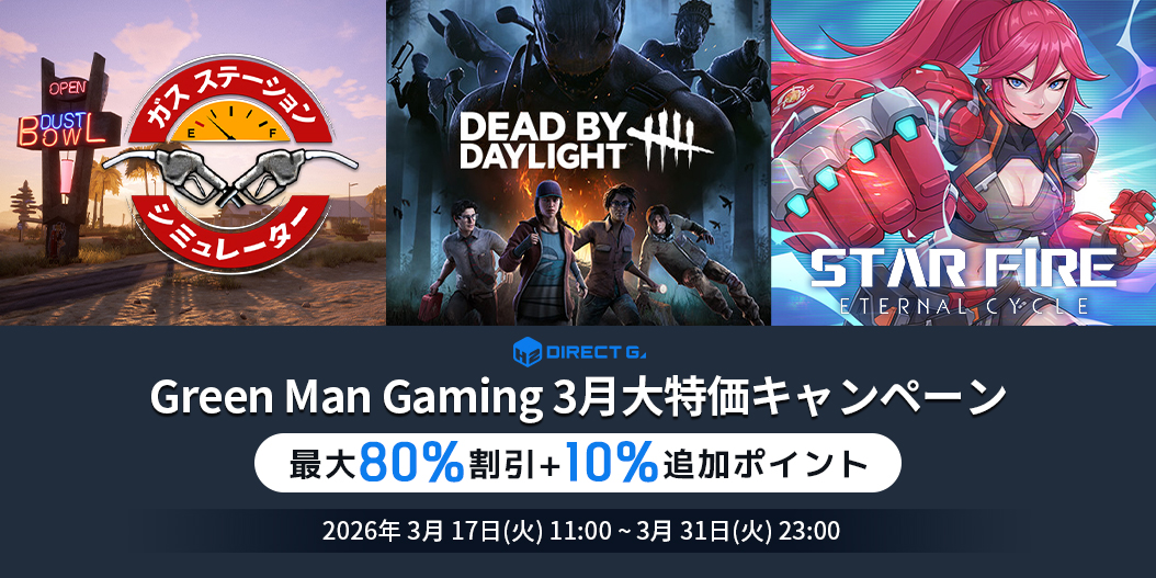 2026年3月17日(火)Green Man Gaming 3月大特価キャンペーンを以下にてご案内いたします。