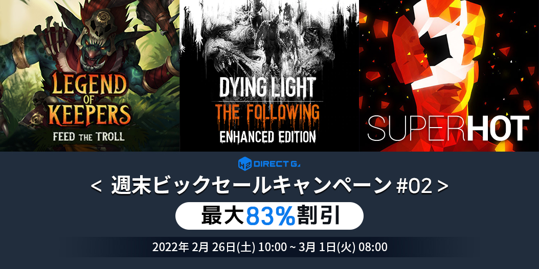 PCデジタルキー公式販売サービス「DIRECT GAMES」では毎週末お得なイベントを開催しております。毎回、対象ゲームが変わるPCゲームユーザー必見のお得なキャンペーンですのでぜひご確認ください!