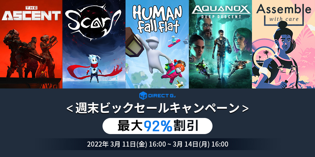 PCデジタルキー公式販売サービス「DIRECT GAMES」では毎週末お得なイベントを開催しております。毎回、対象ゲームが変わるPCゲームユーザー必見のお得なキャンペーンですのでぜひご確認ください!