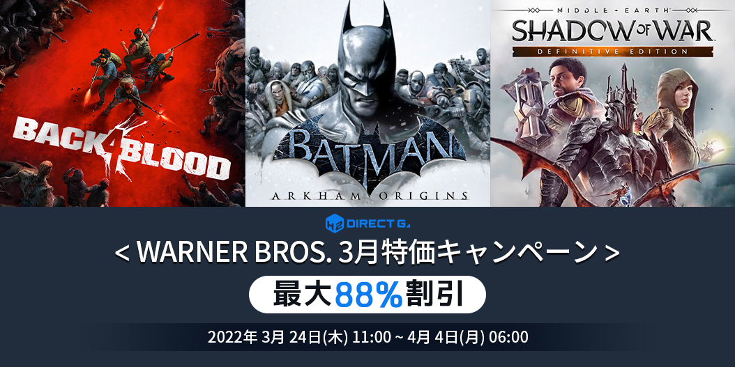 Warner Bros. Games 3月特価キャンペーンの詳細は、こちらをご確認ください。