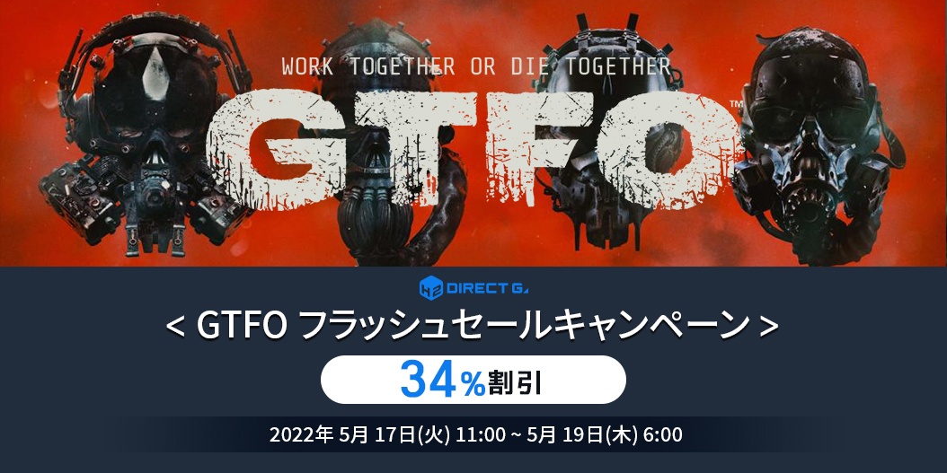 2022年5月17日(火)「GTFO」フラッシュセールキャンペーンを以下にてご案内いたします。