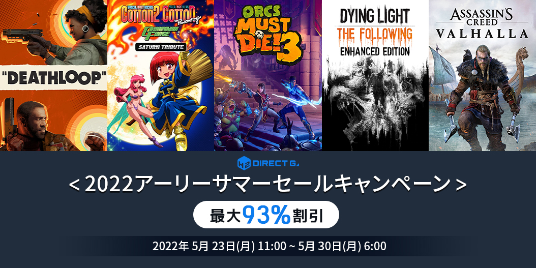 2022アーリーサマーセールキャンペーン #01では、約100本のタイトルを対象に最大93%セールを行わせていただきます。お得なキャンペーンとなっておりますので、ぜひご確認ください!