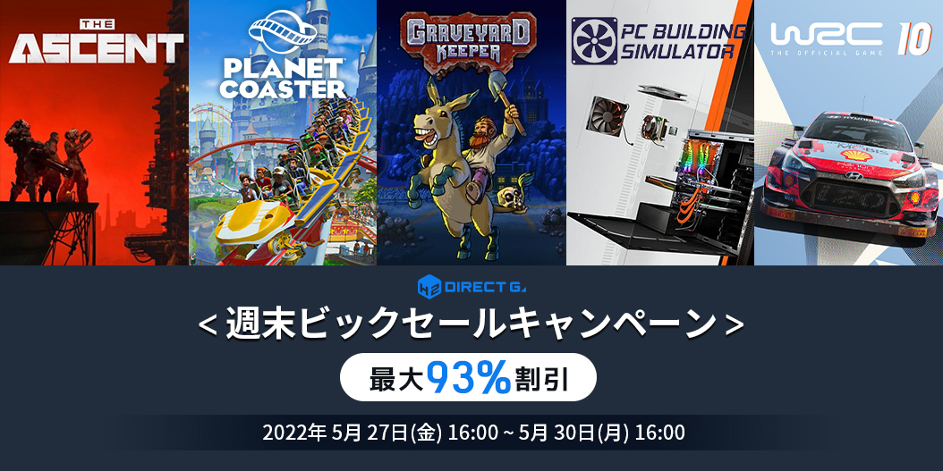 PCデジタルキー公式販売サービス「DIRECT GAMES」では毎週末お得なイベントを開催しております。毎回、対象ゲームが変わるPCゲームユーザー必見のお得なキャンペーンですのでぜひご確認ください!
