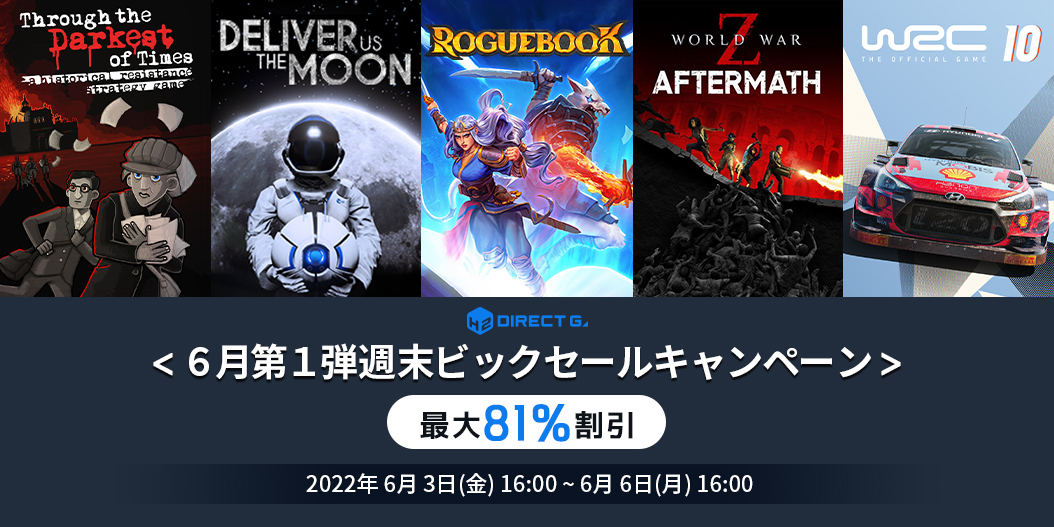 PCデジタルキー公式販売サービス「DIRECT GAMES」では毎週末お得なイベントを開催しております。毎回、対象ゲームが変わるPCゲームユーザー必見のお得なキャンペーンですのでぜひご確認ください!