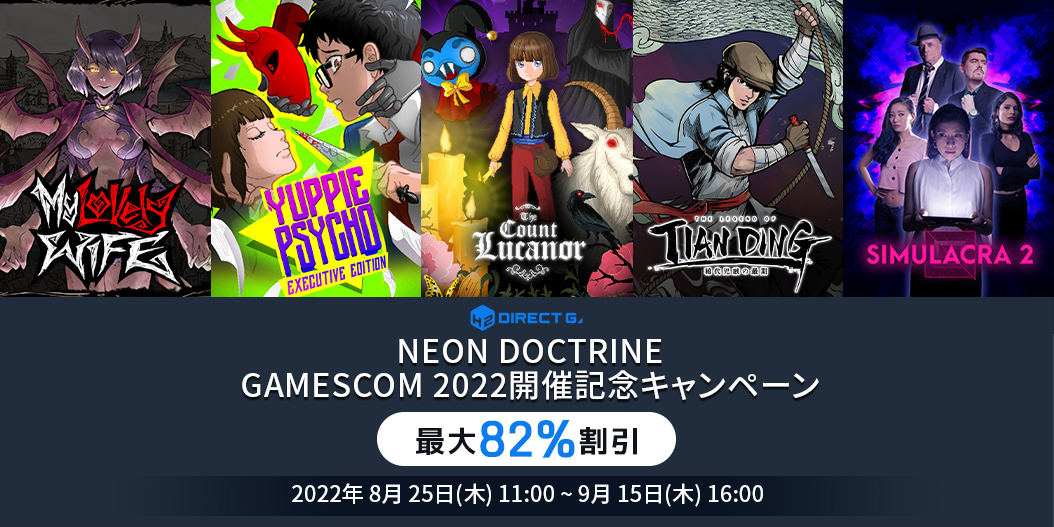 2022年8月25日(木)Neon Doctrine gamescom 2022開催記念キャンペーンを以下にてご案内いたします。