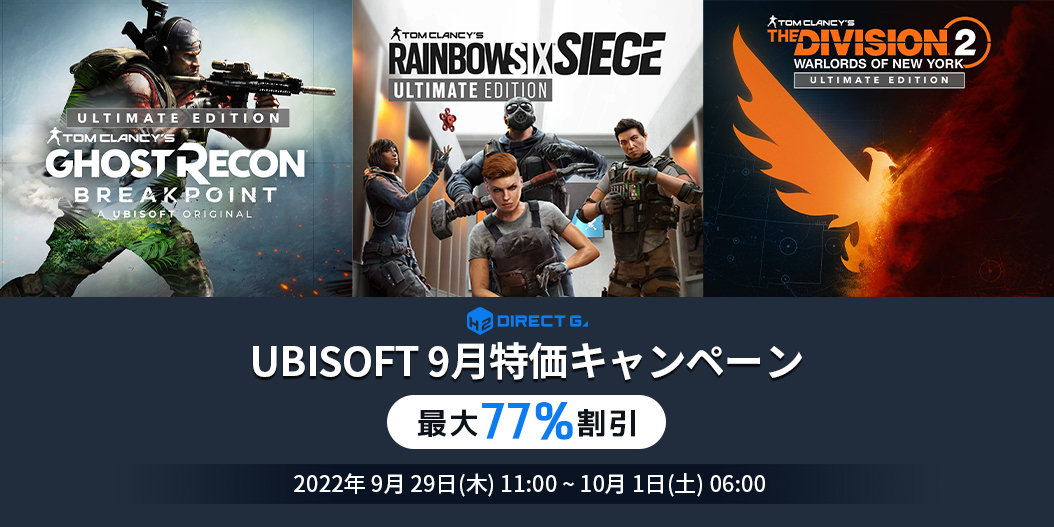2022年9月29日(木)Ubisoft 9月特価キャンペーン #01を以下にてご案内いたします。