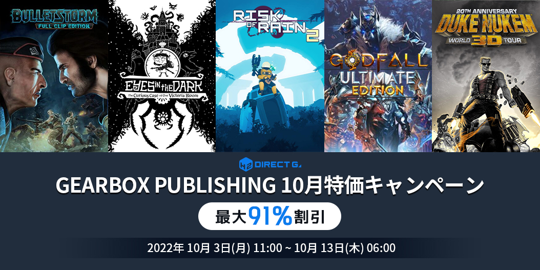 2022年10月3日(月)Gearbox Publishing 10月特価キャンペーンを以下にてご案内いたします。