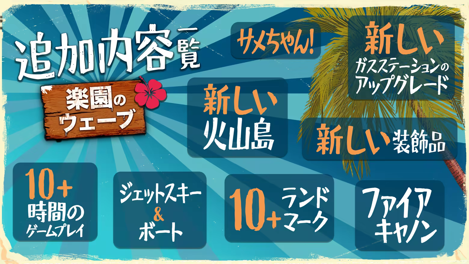 「Tidal Wave」DLCでは、独自のルール、新しいゲームメカニクス、息をのむような美しい環境、そして「神の機嫌取り」が待ち受ける、遠い楽園の島に新しいガソリンスタンドを設立できます。